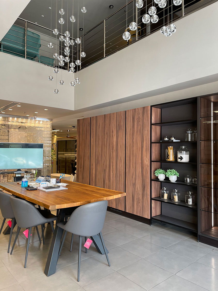 Asalah's showroom area is 300 square meters including the complete product range: kitchens, appliances, countertops, dressing rooms and walk-in closets, outdoor furniture and safety entrance doors.